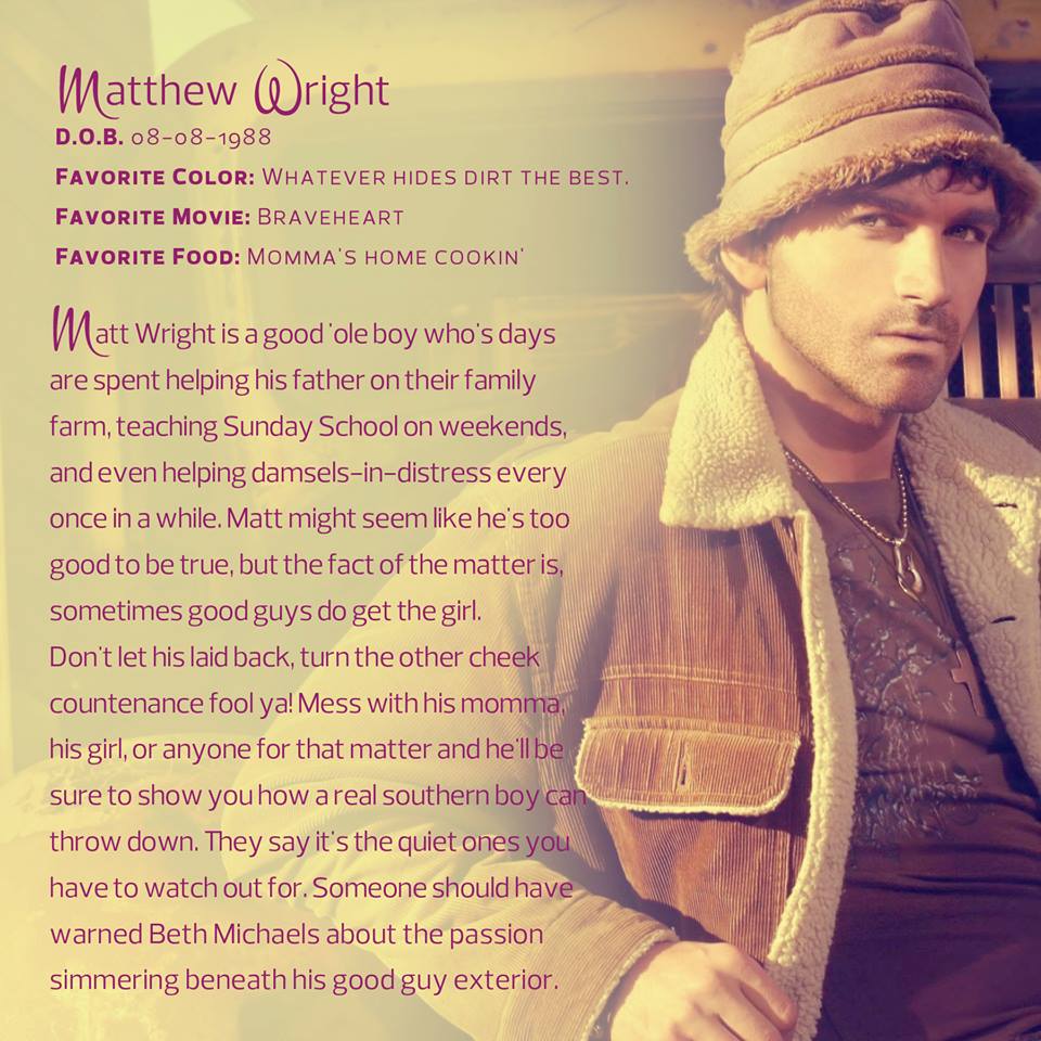There’s a new local in town when Beth arrives, and suddenly, it ain’t all that easy for her to remember her rules for dating. #1. Cookie-cutter-perfect guys ain’t her type. #2. Tie wearin’ and church frequentin’ is an automatic dismissal. #3. Most importantly, never date anyone from small minded, conservative, Bible-thumping towns like Salem. Unfortunately, Matthew Wright breaks all her rules and then some.